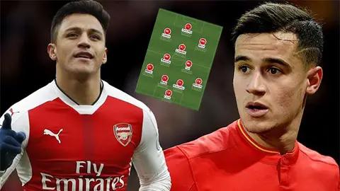 Vị trí trung phong sẽ cho do Alexis Sanchez đảm nhận. 17 pha