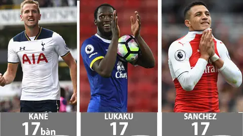 17 bàn là Romelu Lukaku của Everton, Harry Kane của Tottenham,