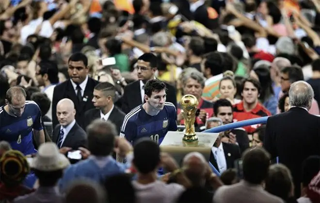 Ảnh Messi ngước nhìn cúp thế giới giúp nhiếp ảnh gia người Trung Quốc Bao Tailiang đoạt giải ảnh đẹp nhất năm 2014.